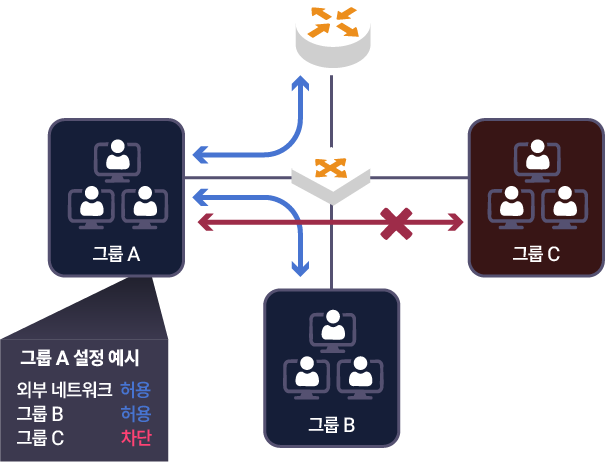 게이트웨이를 기준으로 내/외부 차단 기능을 제공하여 외부 통신이 필요없는 단말을 통제